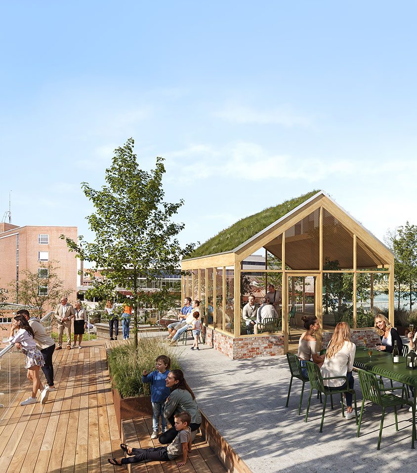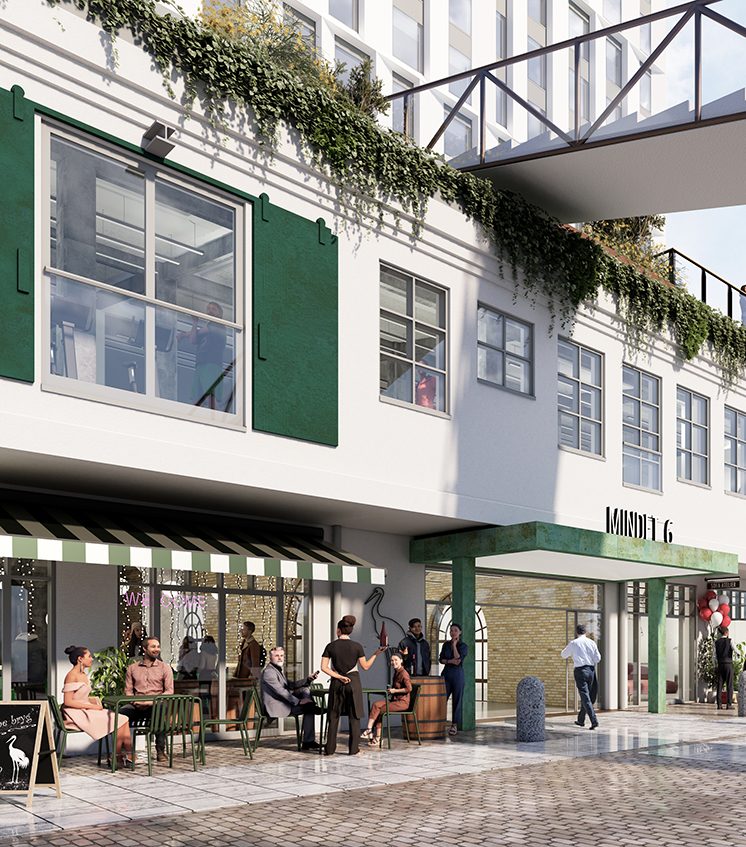 Et sted, hvor alle er velkomne til at opholde sig, og hvor der er nem adgang til de virksomheder, der flytter ind i basen på Mindet. Torvet bliver et naturligt samlingspunkt for dem, der bruger Mindet – både beboere, gæster og besøgende i området. Samtidig bliver byrummene omkring Mindet en integreret del af kvarteret og binder området endnu tættere sammen med resten af byen.