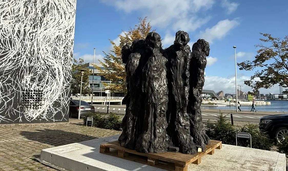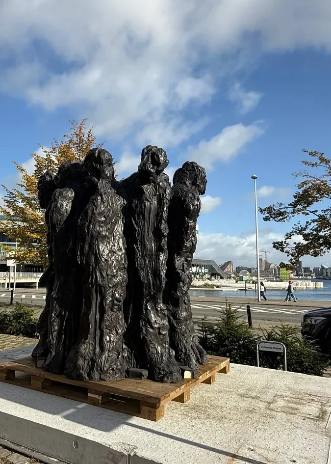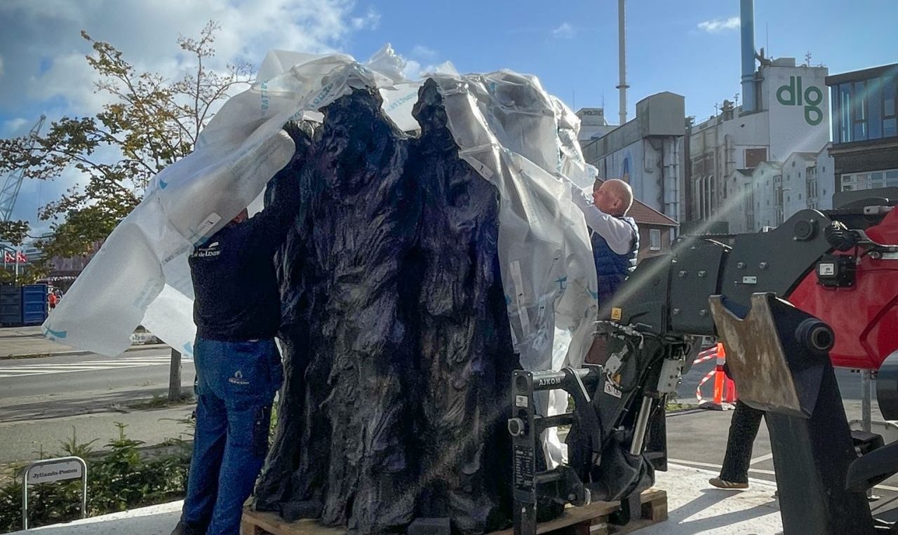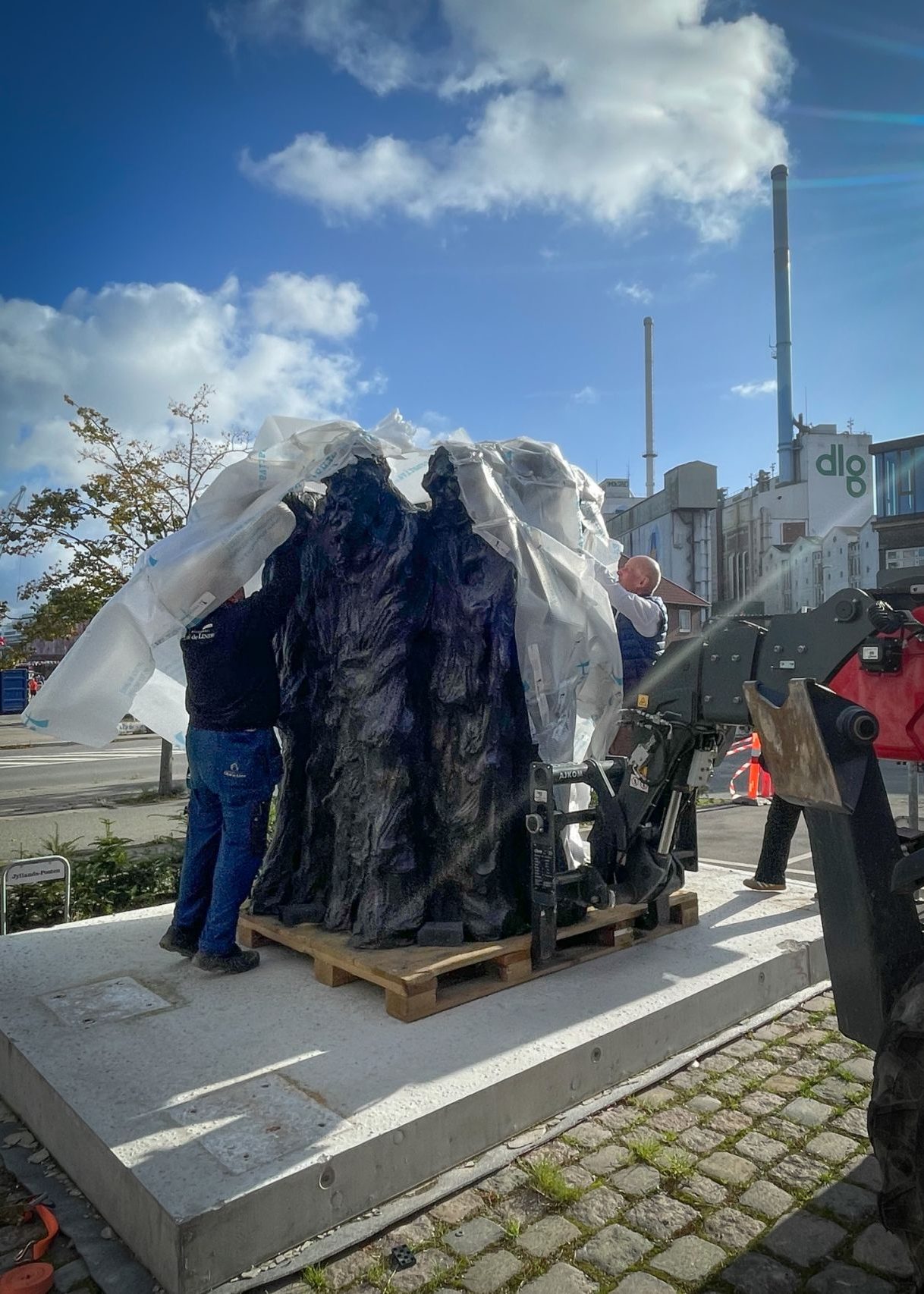 Den monumentale bronzeskulptur 𝘛𝘩𝘦 𝘊𝘳𝘰𝘸𝘥 / 𝘓𝘢 𝘍𝘰𝘭𝘭𝘢 af den anerkendte danske billedhugger Jørgen Haugen Sørensen (f. 1934) har nu fået sin midlertidige plads ved Mindet.